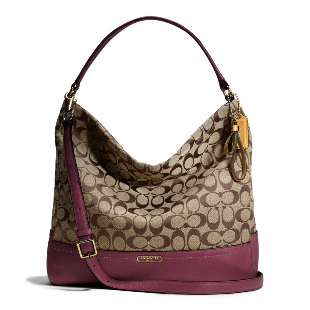 COACH F23279 - PARK SIGNATURE HOBO - BRASS/KHAKI/BURGUNDY - HANDBAGS
