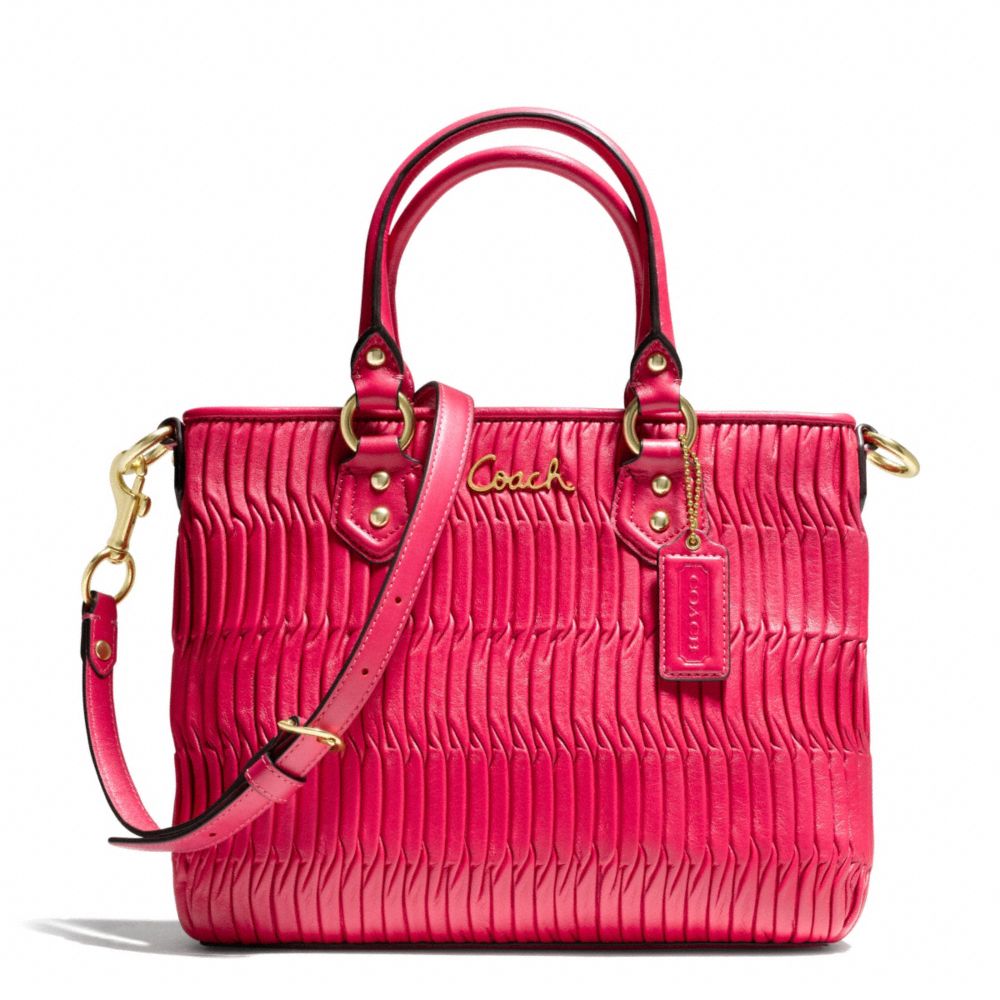 COACH F23972 - ASHLEY GATHERED LEATHER MINI TOTE - BRASS/RASPBERRY (click the link before for more detail)