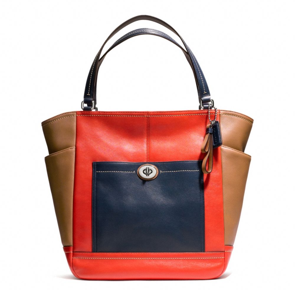 COACH F24391 - PARK COLORBLOCK NORTH/SOUTH TOTE - SILVER/VERMILLION MULTICOLOR (click the link before for more detail)