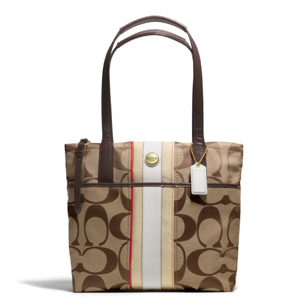 COACH F24666 - SIGNATURE STRIPE MULTI STRIPE TOTE - BRASS/KHAKI/VERMILLION MTI (click the link before for more detail)