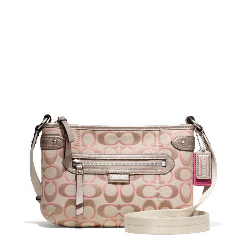 COACH F49452 - DAISY OUTLINE SIGNATURE METALLIC SWINGPACK - SILVER/LIGHT KHAKI/GOLD (click the link before for more detail)