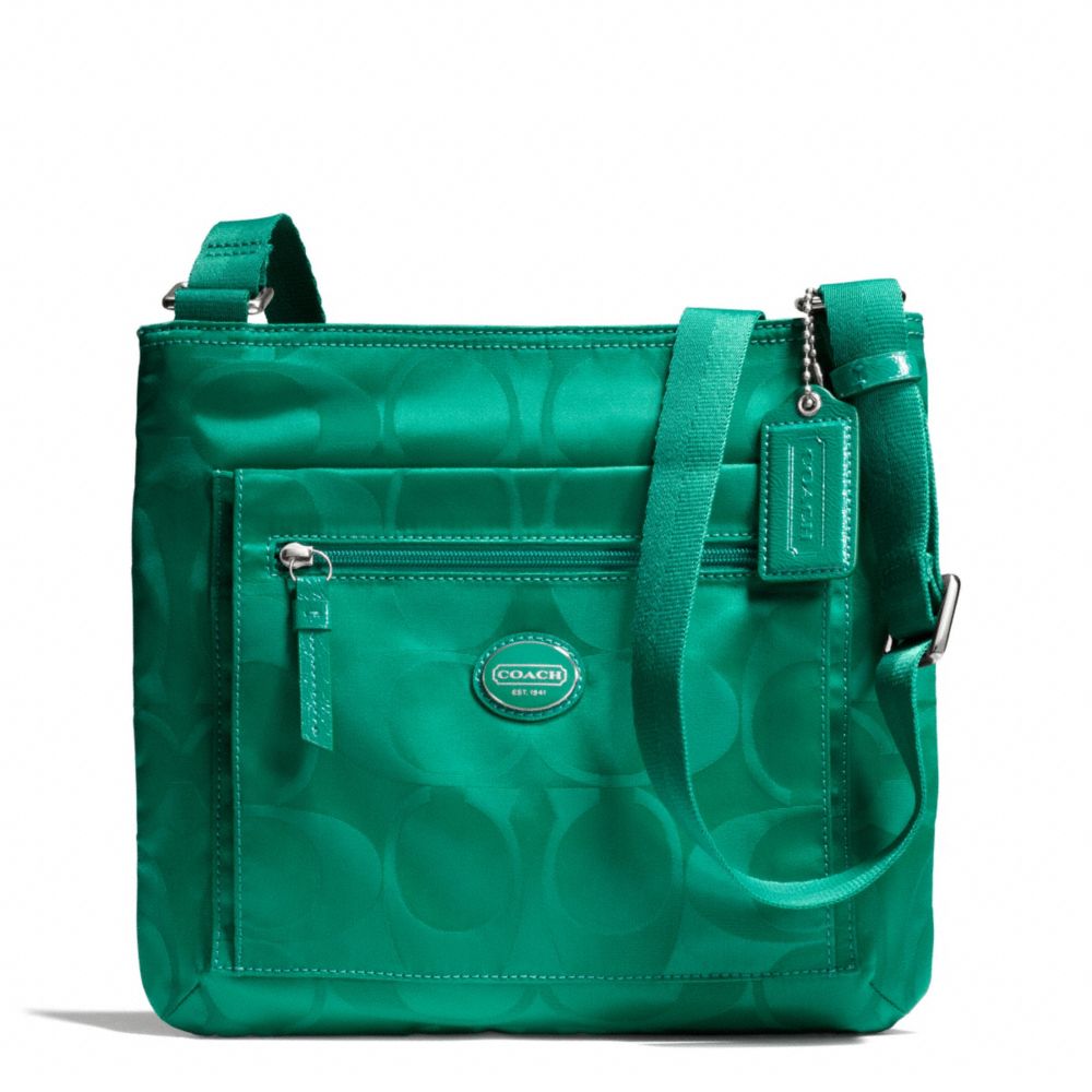 COACH F77408 - GETAWAY SIGNATURE NYLON FILE BAG - SILVER/BRIGHT JADE (click the link before for more detail)