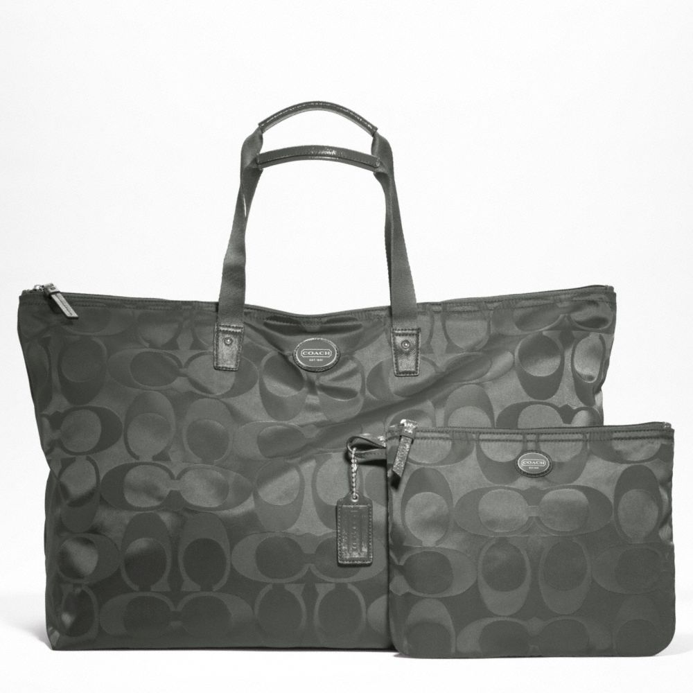 COACH F77316 - GETAWAY SIGNATURE NYLON LARGE PACKABLE WEEKENDER - SILVER/GREY (click the link before for more detail)