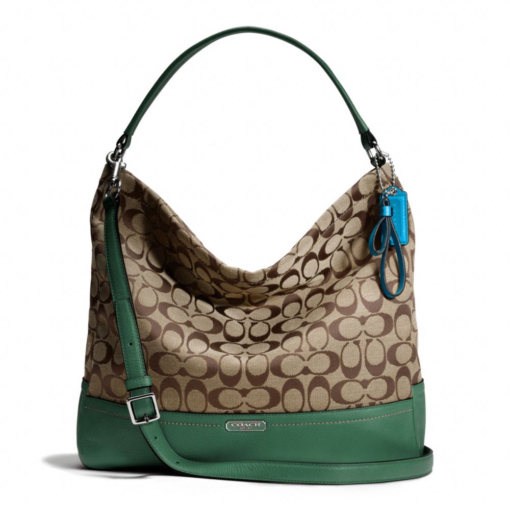 COACH F23279 - PARK SIGNATURE HOBO - SILVER/KHAKI/IVY - HANDBAGS