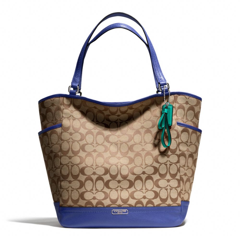 COACH F23295 - PARK SIGNATURE NORTH/SOUTH TOTE - SILVER/KHAKI/FRENCH-BLUE - HANDBAGS