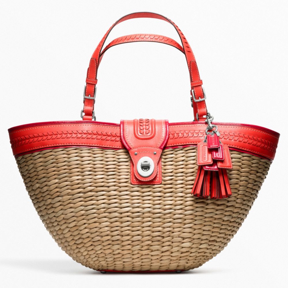 COACH F22905 - STRAW EDITORIAL XL TOTE - SILVER/NATURAL/TANGERINE - HANDBAGS