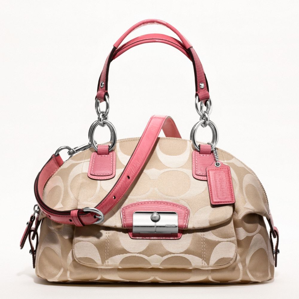 COACH F19334 - KRISTIN SIGNATURE SATEEN DOMED SATCHEL - SILVER/LIGHT KHAKI/ROSE (click the link before for more detail)