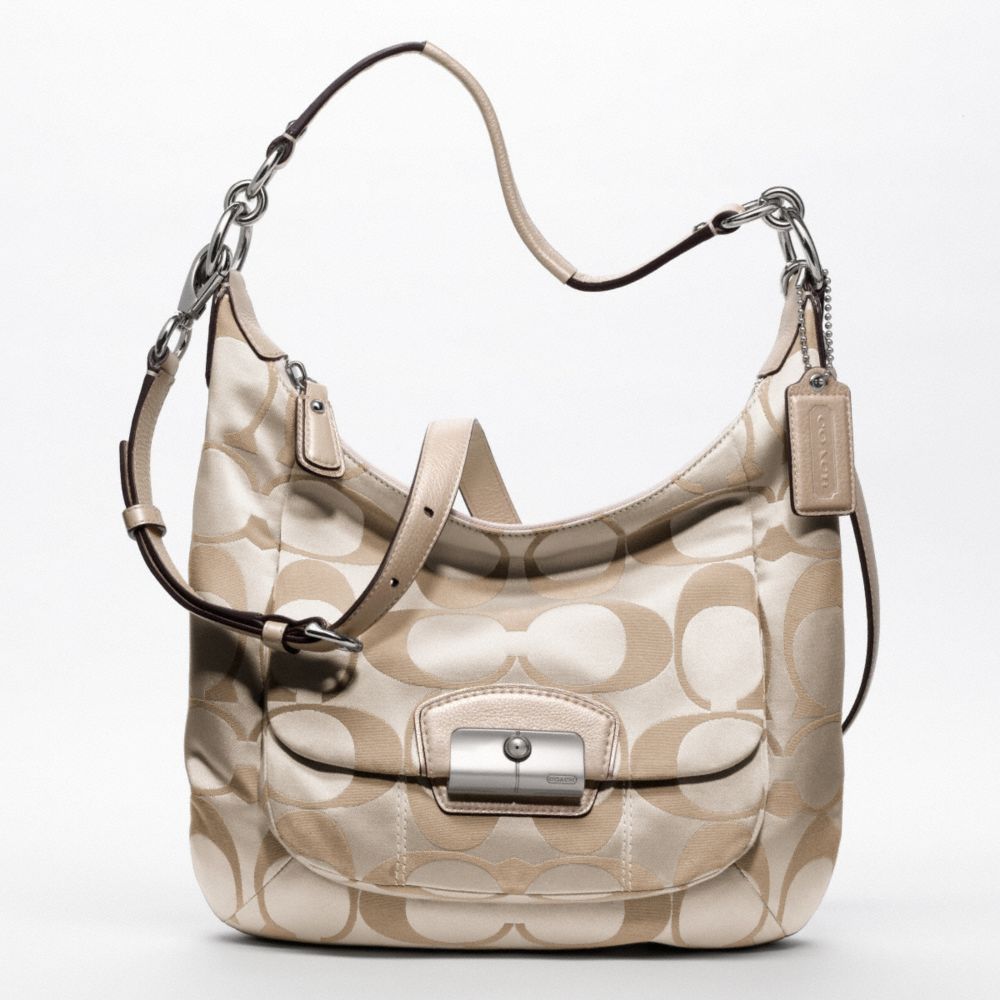 COACH F19335 - KRISTIN SIGNATURE SATEEN HOBO - SILVER/CRM-LT-KHA/CHAMPAGNE - HANDBAGS