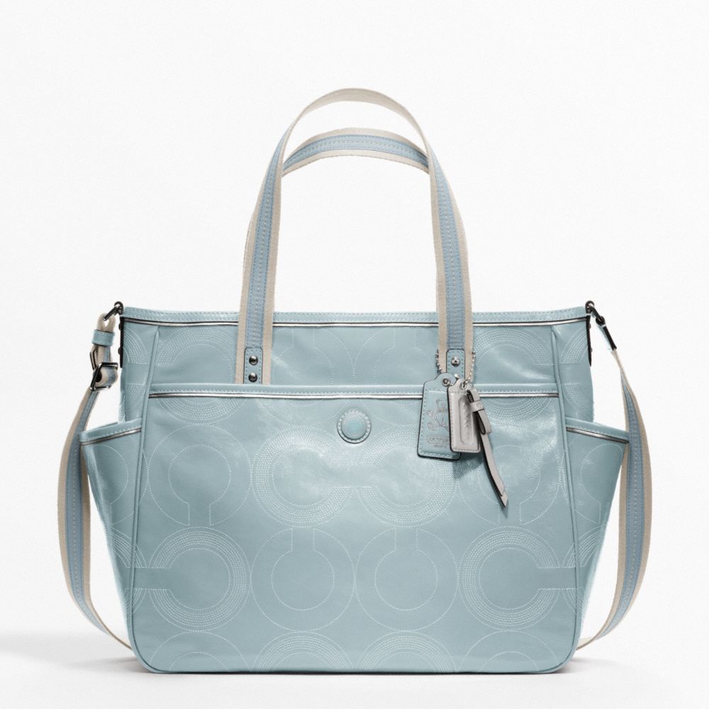 COACH F19911 - BABY BAG STITCHED PATENT TOTE - SILVER/MIST (click the link before for more detail)