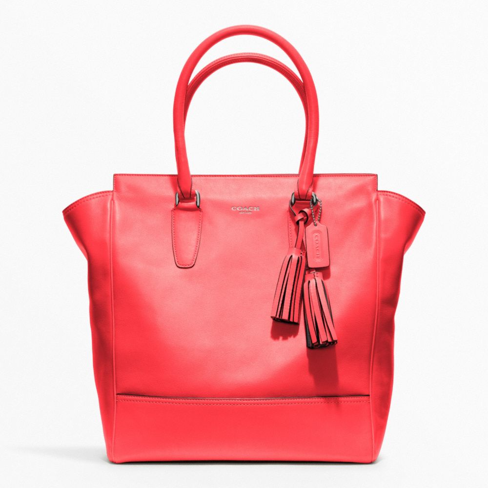 COACH F19924 - LEATHER TANNER TOTE - SILVER/BRIGHT CORAL (click the link before for more detail)