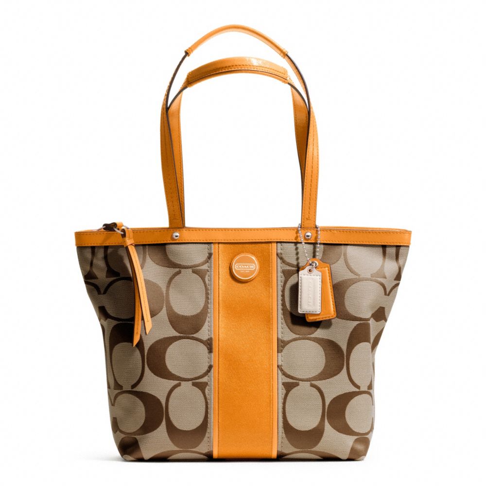 COACH F21950 - SIGNATURE STRIPE TOTE - SILVER/KHAKI/ORANGE-SPICE - HANDBAGS