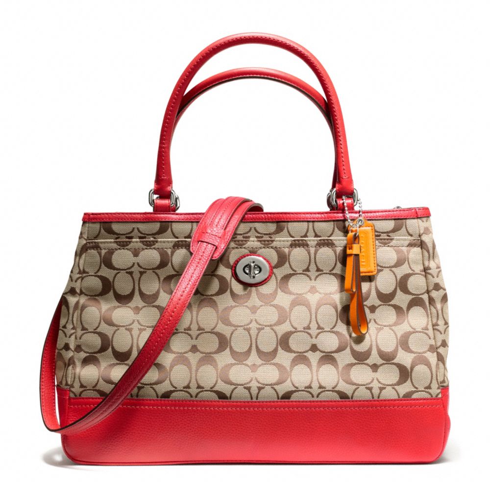 COACH F23292 - PARK SIGNATURE LARGE CARRYALL - SILVER/KHAKI/VERMILLION (click the link before for more detail)