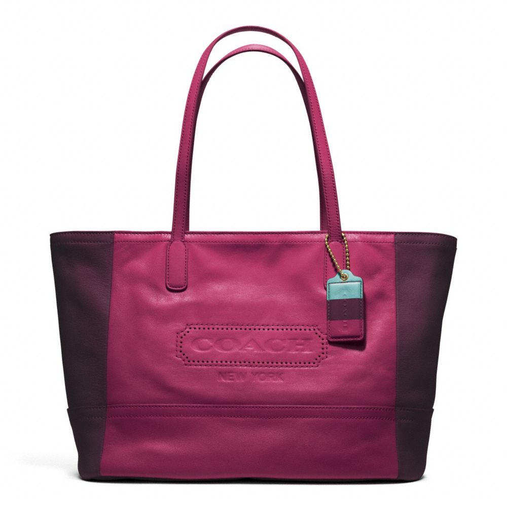 COACH F23469 - WEEKEND COLORBLOCK LEATHER MEDIUM ZIP TOP TOTE - BRASS/DEEP PORT/EGGPLANT (click the link before for more detail)