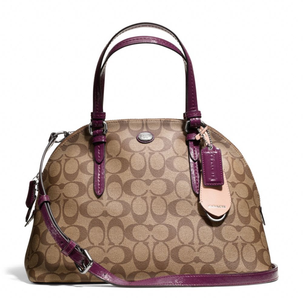 COACH F24606 - PEYTON SIGNATURE CORA DOMED SATCHEL - SILVER/KHAKI/PLUM (click the link before for more detail)