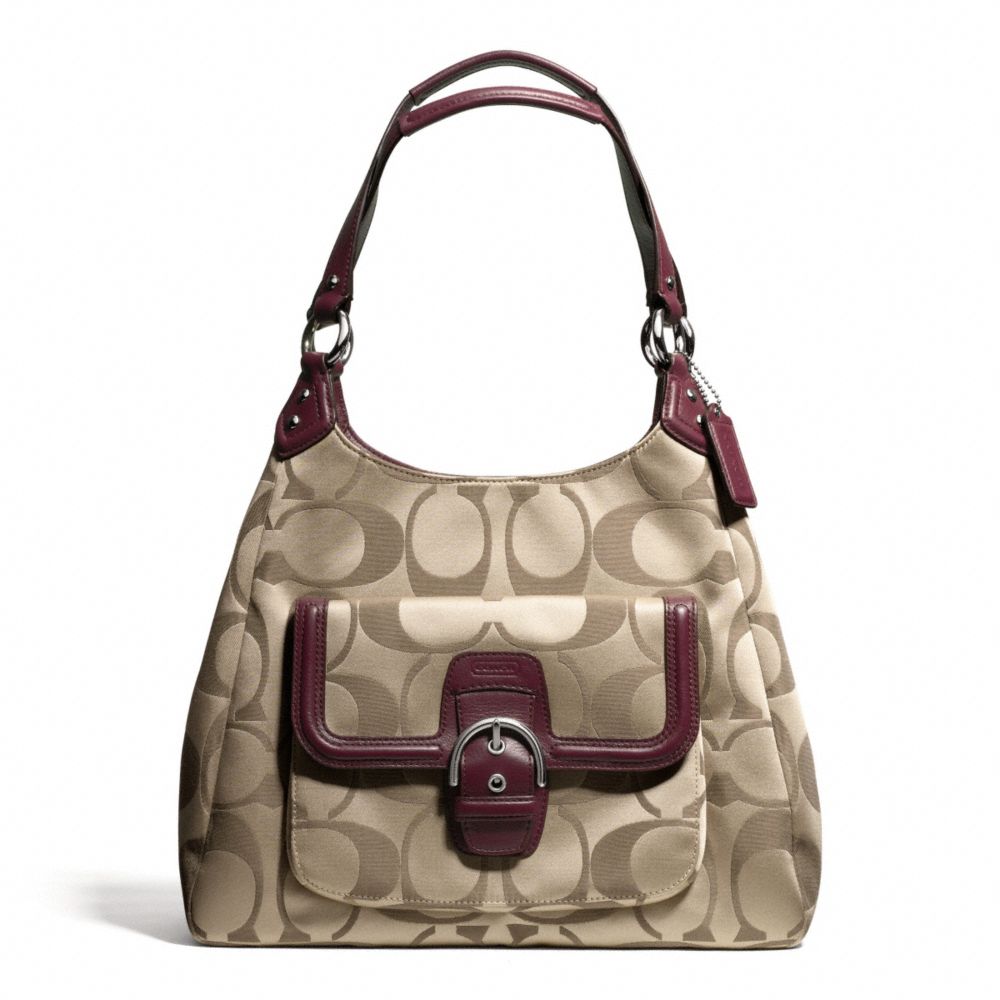 COACH F24742 - CAMPBELL SIGNATURE HOBO - SILVER/KHAKI/BURGUNDY (click the link before for more detail)