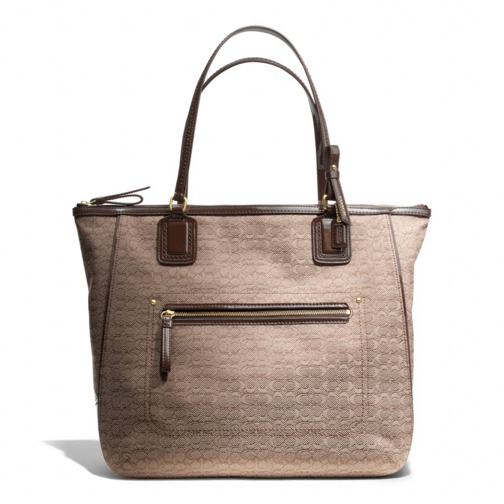 COACH F25078 - POPPY SIGNATURE C MINI OXFORD TOTE - BRASS/KHAKI/MAHOGANY - HANDBAGS