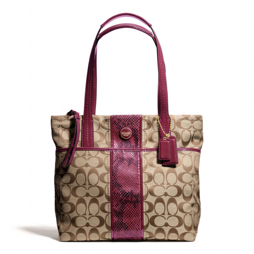 COACH F25706 - SIGNATURE STRIPE PYTHON STRIPE TOTE - BRASS/KHAKI/RASPBERRY (click the link before for more detail)