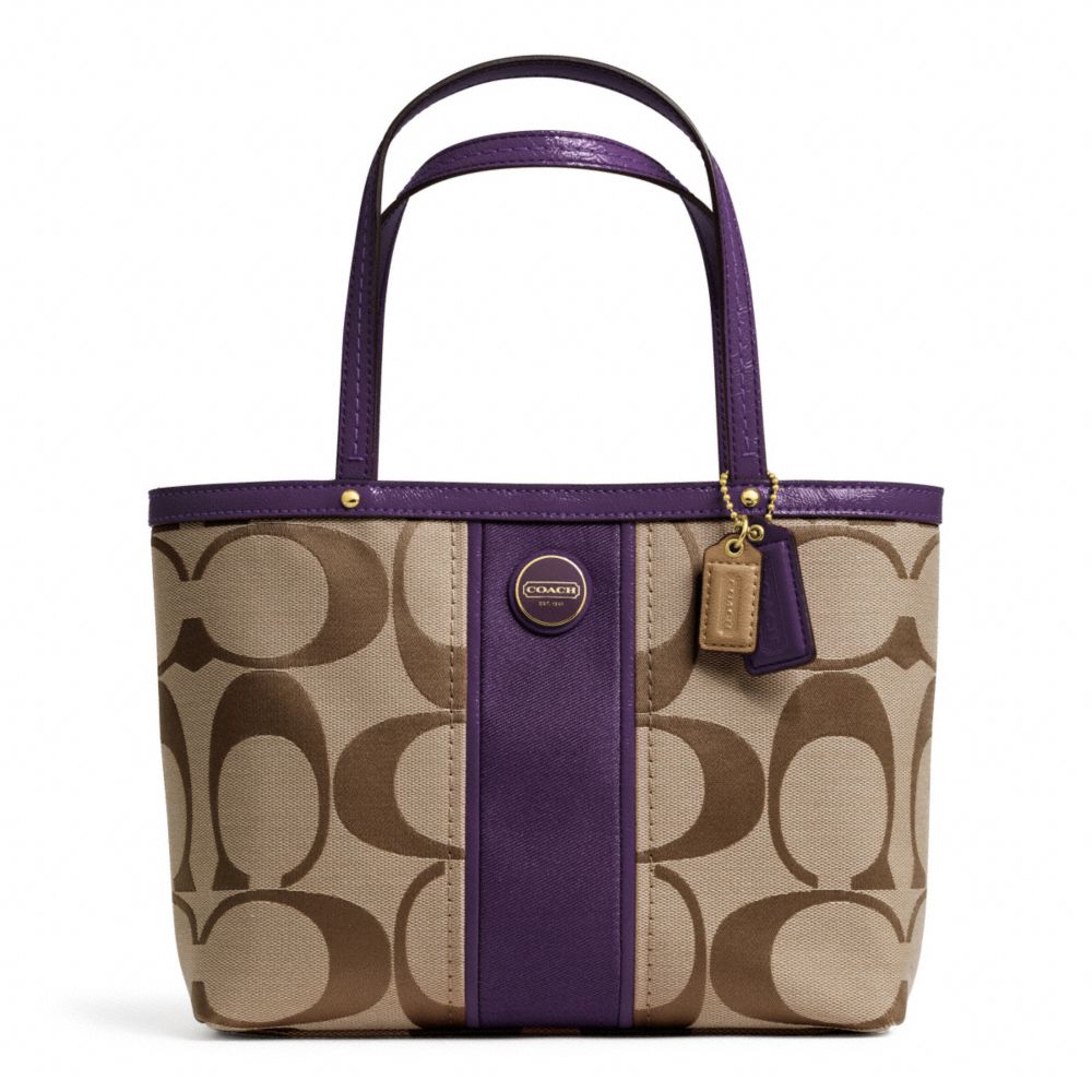 COACH F48798 - SIGNATURE STRIPE TOP HANDLE TOTE - BRASS/KHAKI/PURPLE (click the link before for more detail)