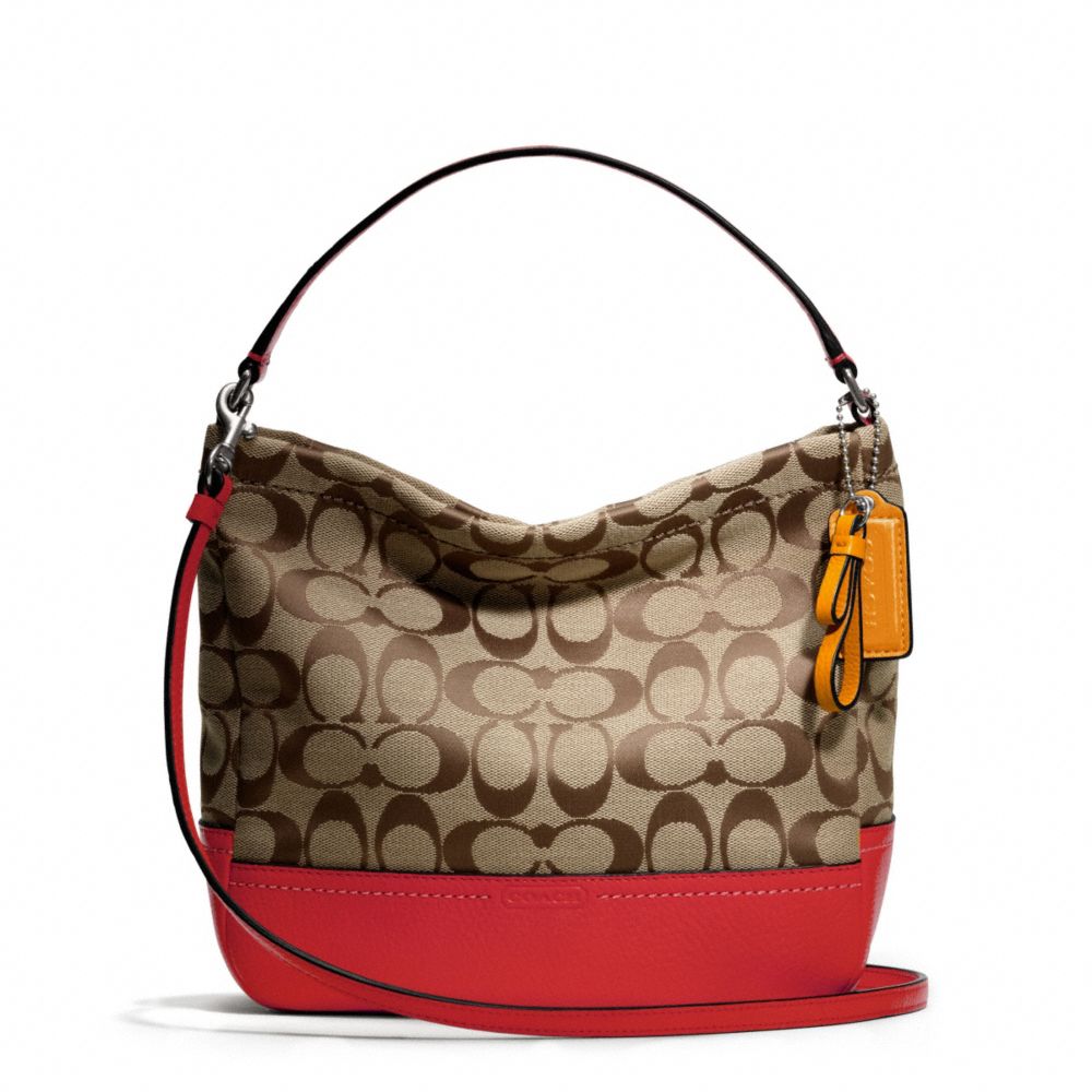 COACH F49158 - PARK SIGNATURE MINI DUFFLE CROSSBODY - SILVER/KHAKI/VERMILLION (click the link before for more detail)