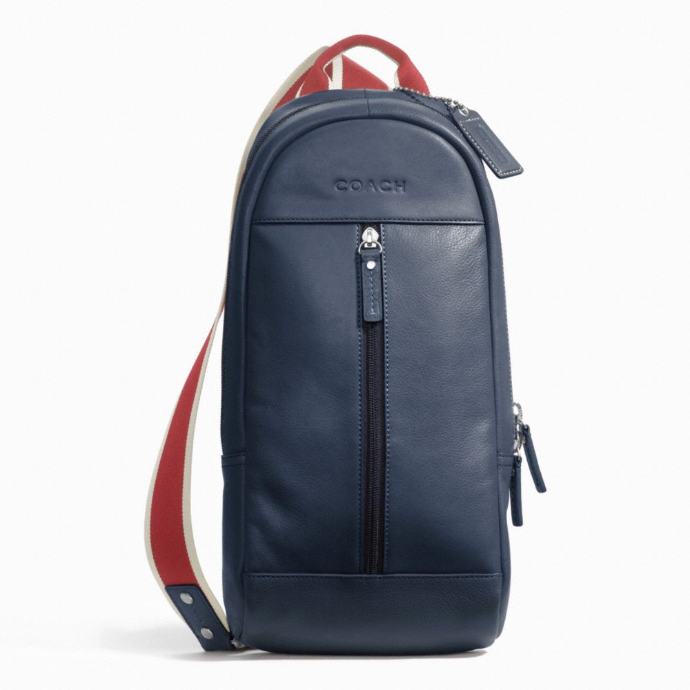 COACH F70811 - HERITAGE WEB LEATHER SLING - SILVER/NAVY/RED (click the link before for more detail)