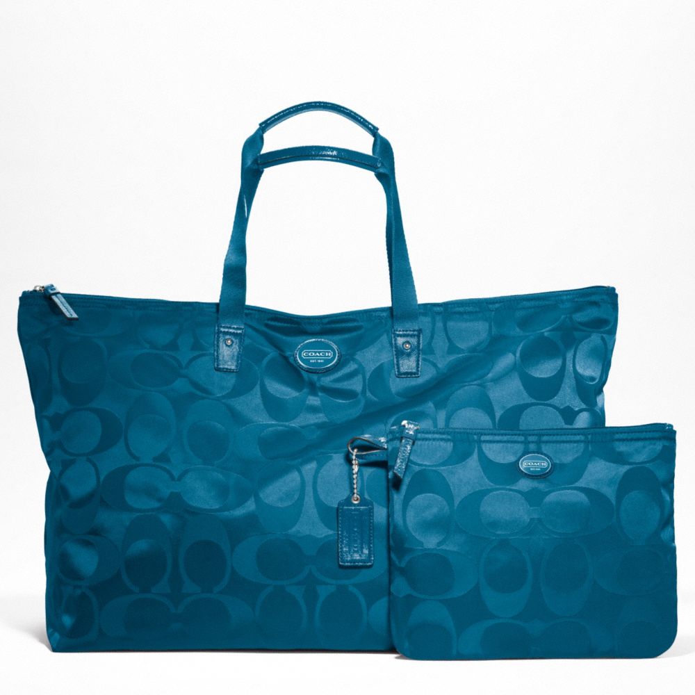 COACH F77316 - GETAWAY SIGNATURE NYLON LARGE PACKABLE WEEKENDER - SILVER/DARK PLUME (click the link before for more detail)