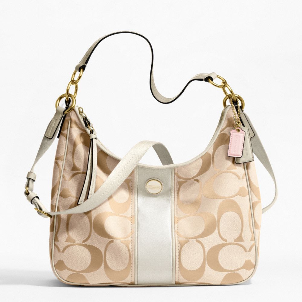COACH F21873 - SIGNATURE STRIPE CONVERTIBLE HOBO - BRASS/LIGHT KHAKI/WHITE (click the link before for more detail)