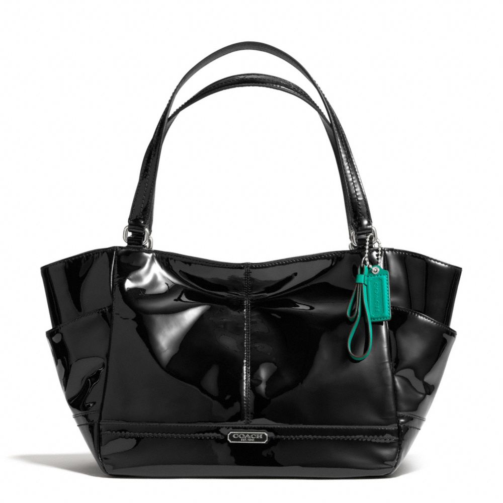 COACH F23979 - PARK PATENT CARRIE TOTE - SILVER/BLACK (click the link before for more detail)