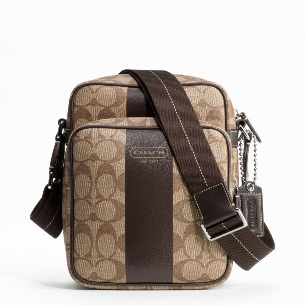COACH F70589 - HERITAGE STRIPE FLIGHT BAG - SILVER/KHAKI/BROWN (click the link before for more detail)