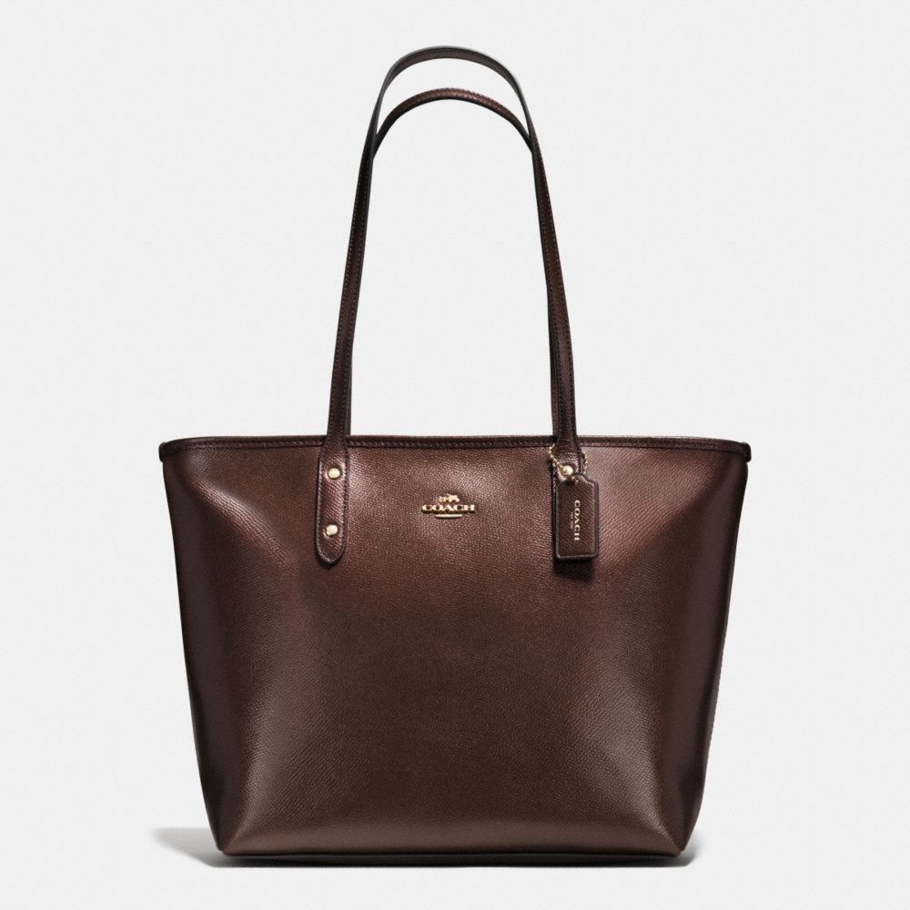 1. COACH f56129 - CITY ZIP TOTE IN METALLIC CROSSGRAIN LEATHER - IMITATION GOLD/BRONZE