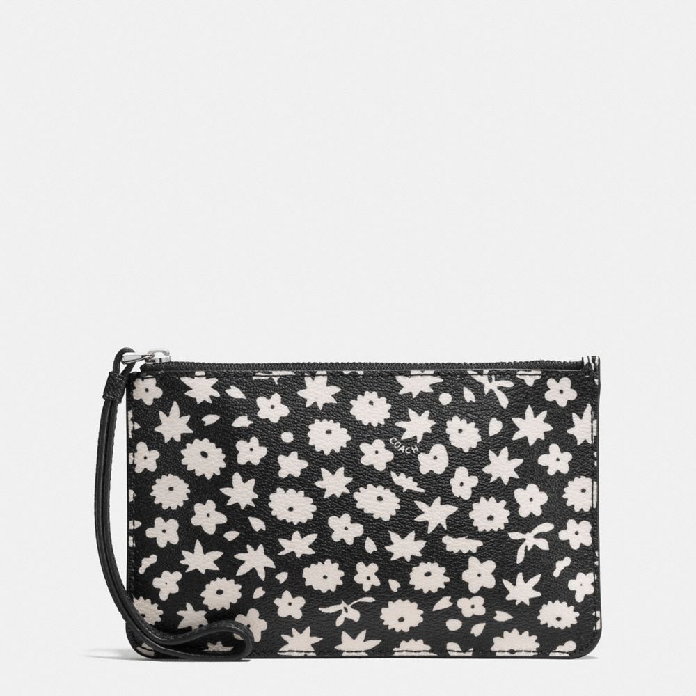 1. COACH f57936 - SMALL WRISTLET IN GRAPHIC FLORAL PRINT COATED CANVAS - SILVER/BLACK MULTI