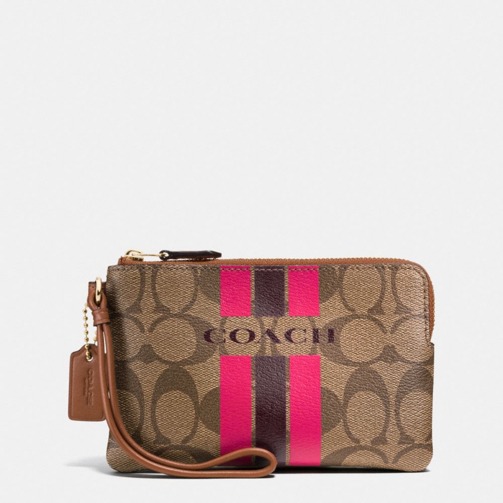 1. COACH f66052 - COACH VARSITY STRIPE CORNER ZIP WRISTLET IN SIGNATURE - IMITATION GOLD/KHAKI/PINK RUBY