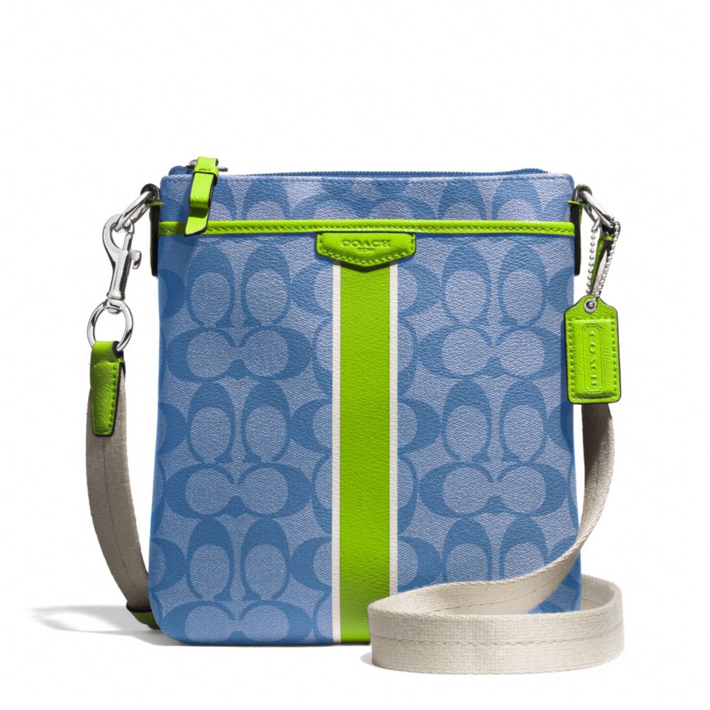 COACH F51265 - SIGNATURE STRIPE SWINGPACK - SILVER/BLUE/GREEN - HANDBAGS