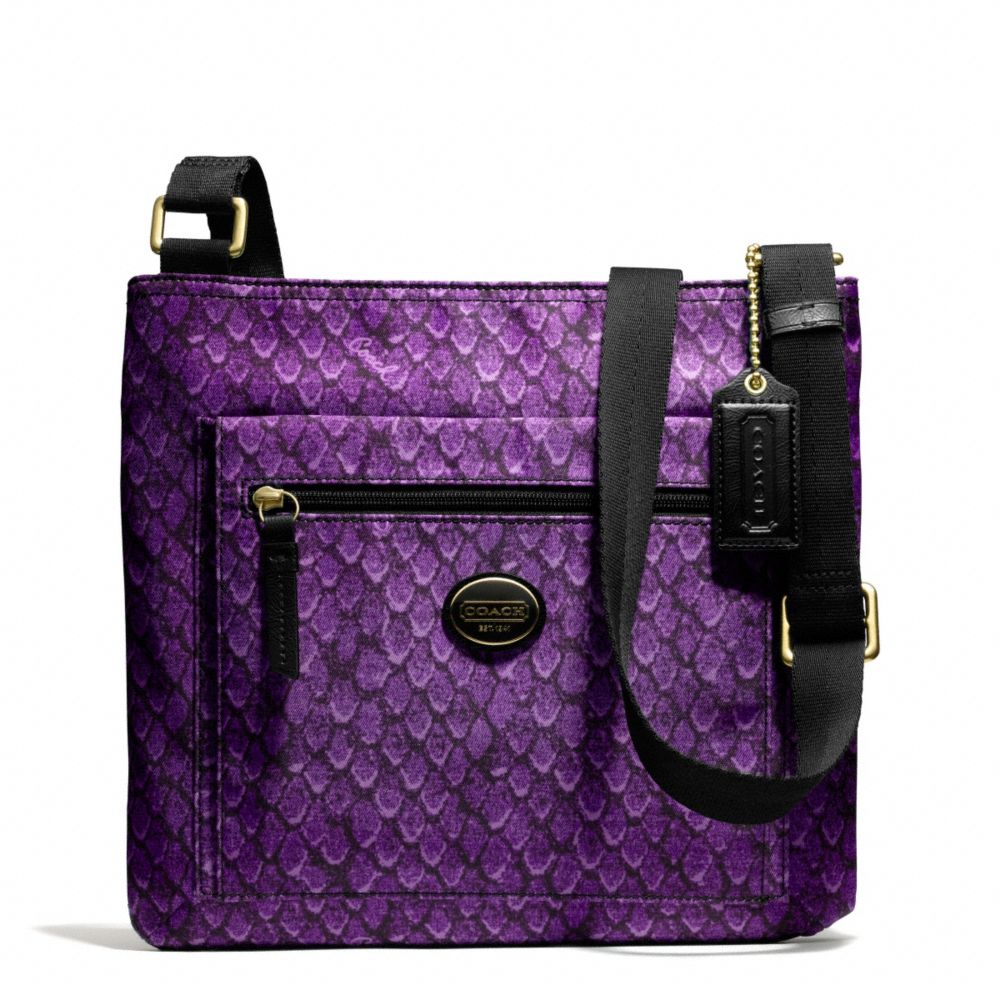 COACH F77481 - GETAWAY SNAKE PRINT FILE BAG - BRASS/PURPLE (click the link before for more detail)