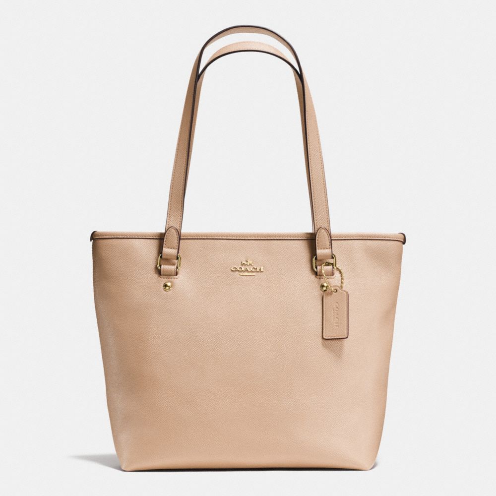 1. COACH f58894 - ZIP TOP TOTE IN CROSSGRAIN LEATHER - IMITATION GOLD/BEECHWOOD