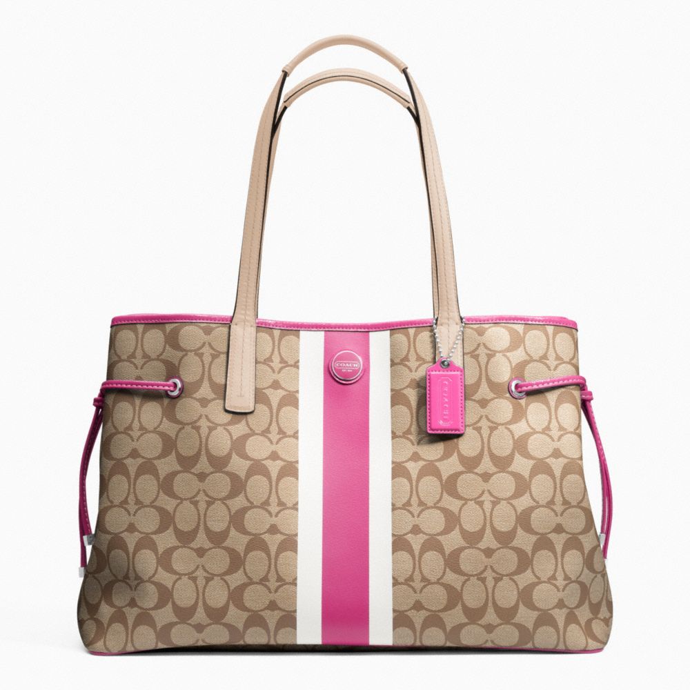 COACH F23049 - SIGNATURE STRIPE PVC LARGE CARRYALL - SILVER/KHAKI/MULBERRY (click the link before for more detail)