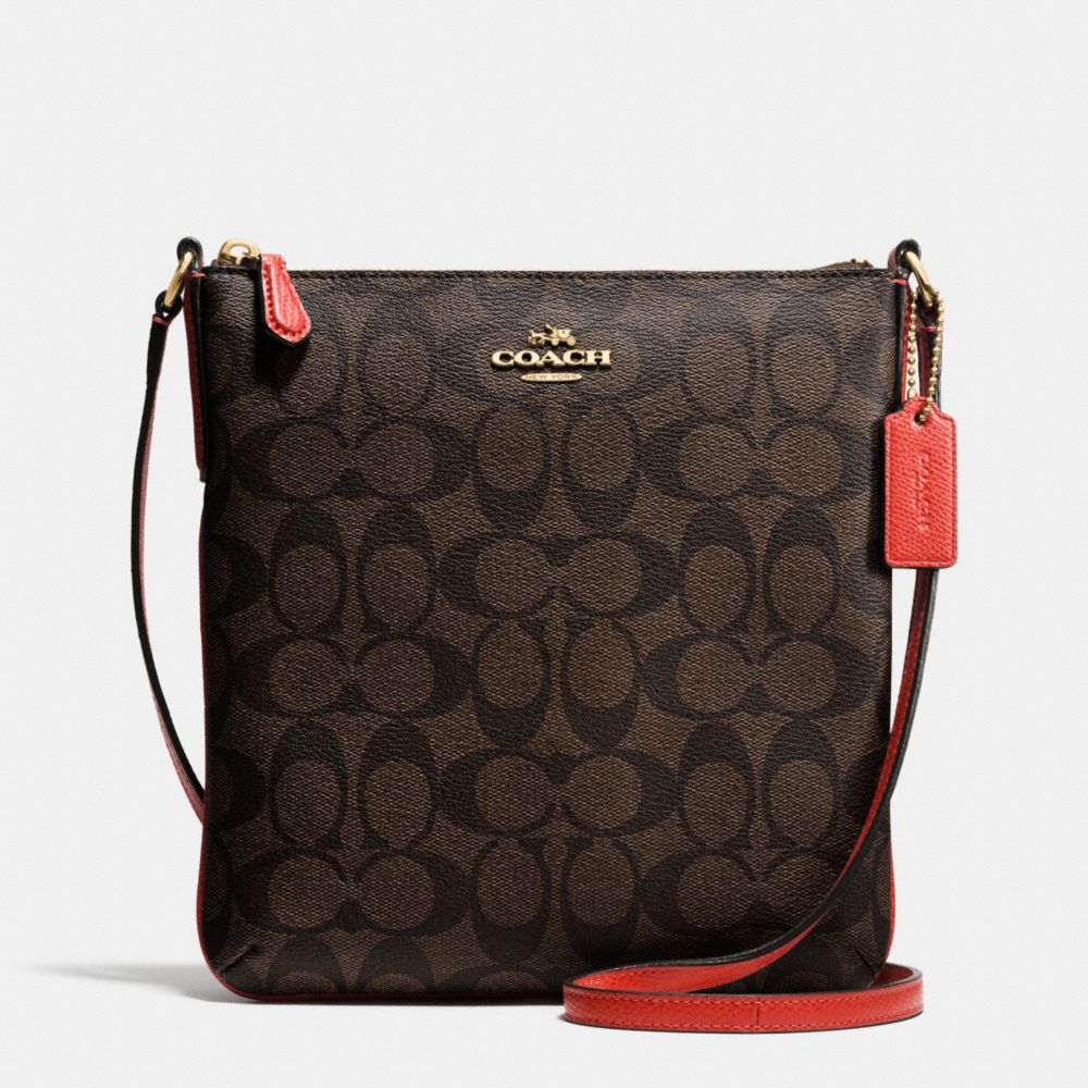 COACH F35940 - NORTH/SOUTH CROSSBODY IN SIGNATURE - IMITATION-GOLD/BROWN/CARMINE - HANDBAGS