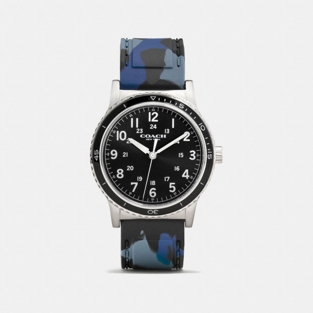 1. COACH w6189 - RIVINGTON STAINLESS STEEL RUBBER STRAP WATCH - BLUE CAMO