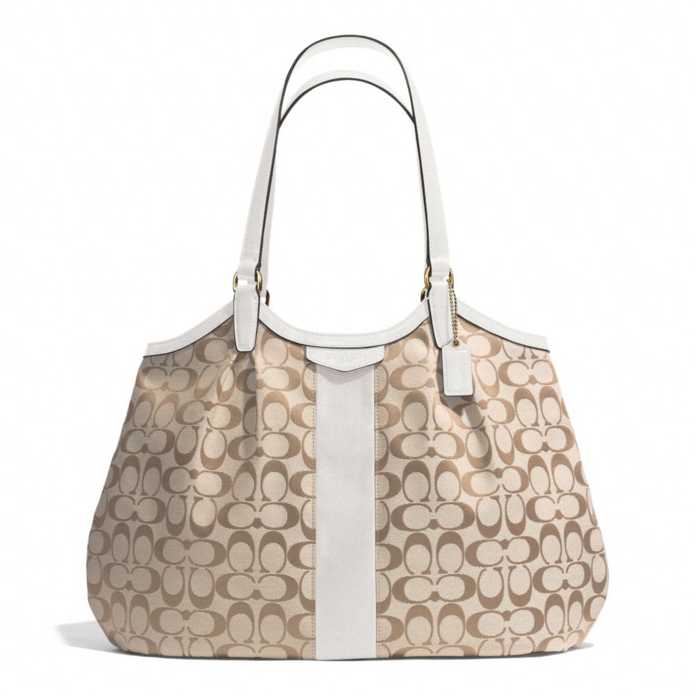 COACH F28503 - SIGNATURE STRIPE 12CM DEVIN SHOULDER BAG - BRASS/LIGHT KHAKI/IVORY (click the link before for more detail)