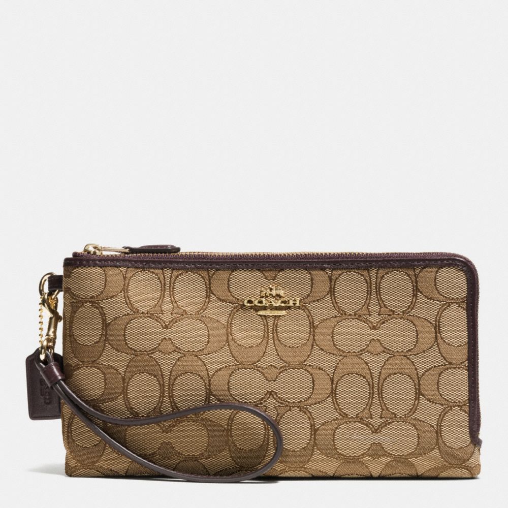 1. COACH f53610 - DOUBLE ZIP WALLET IN SIGNATURE - LIGHT GOLD/KHAKI/BROWN