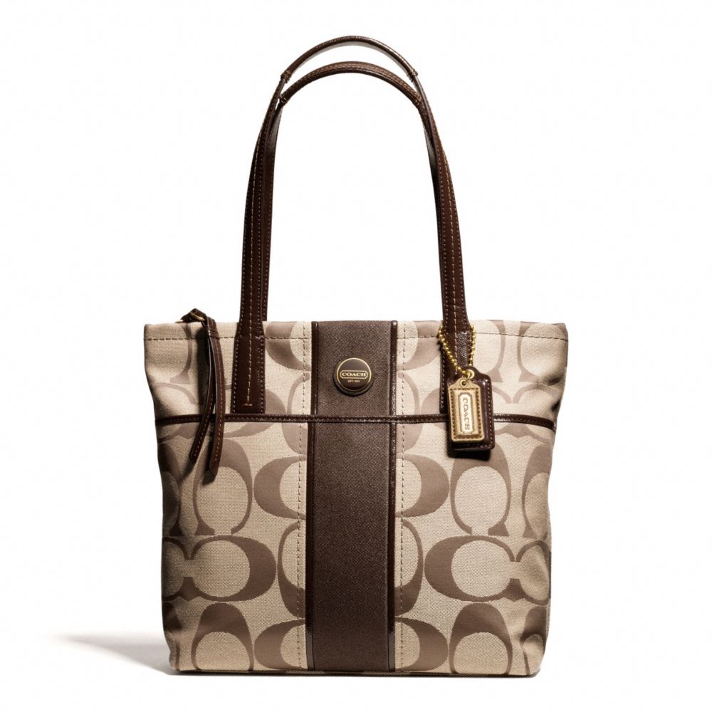 COACH F25771 - SIGNATURE STRIPE TOTE - BRASS/KHAKI/MAHOGANY - HANDBAGS