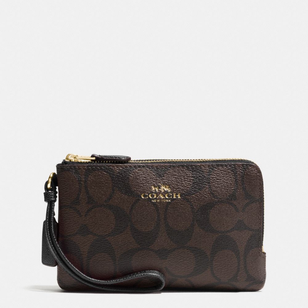1. COACH f66506 - DOUBLE CORNER ZIP WRISTLET IN SIGNATURE - IMITATION GOLD/BROWN/BLACK