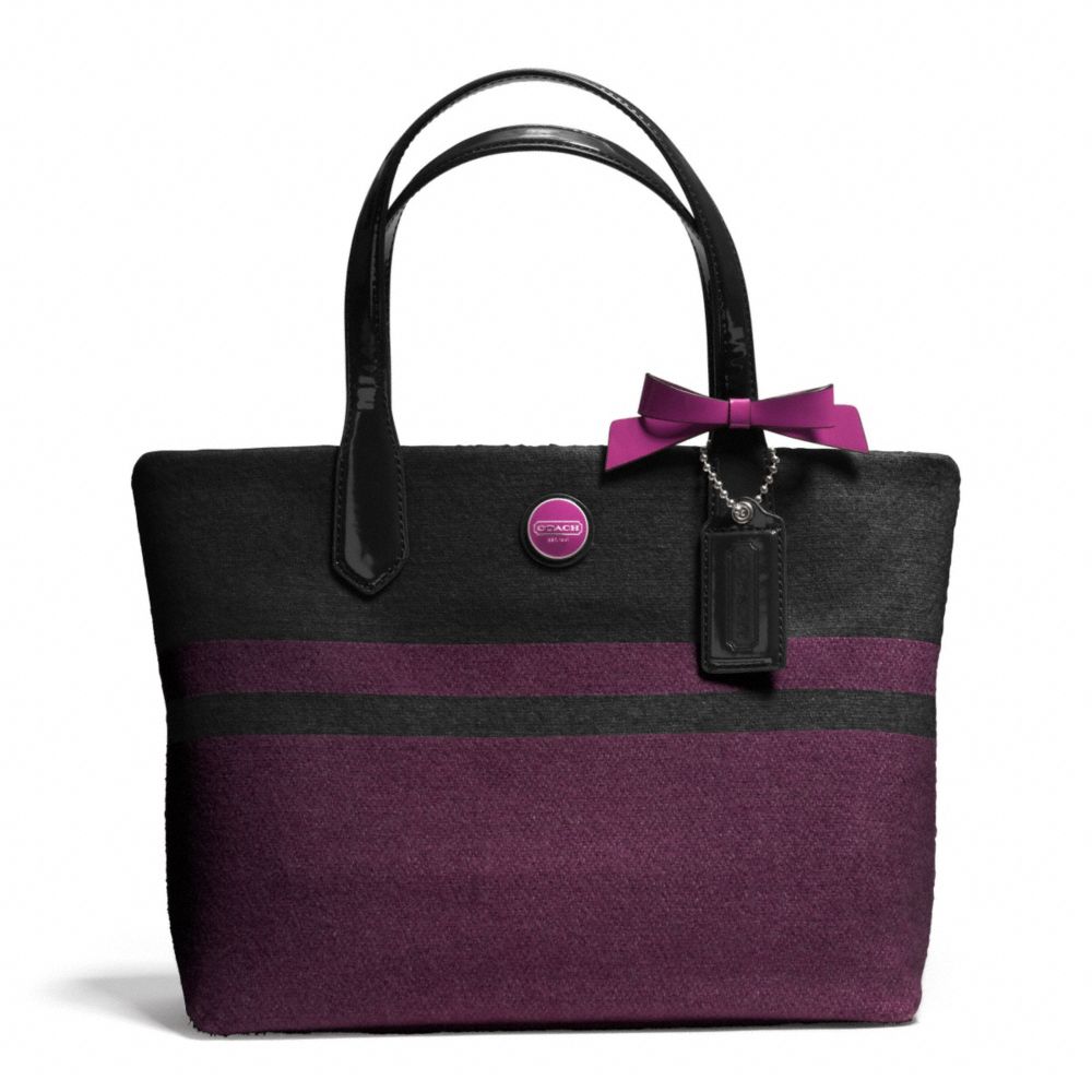 COACH F24786 - SIGNATURE STRIPE WOOL STRIPE LUNCH TOTE - SILVER/CHAR/PASSION BERRY (click the link before for more detail)