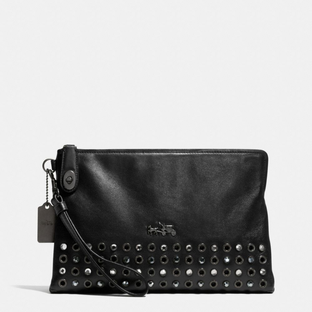 COACH F52476 - JEWELS AND GROMMETS LARGE POUCH CLUTCH IN LEATHER - BURNISHED-ANTIQUE-BRASS/BLACK - HANDBAGS