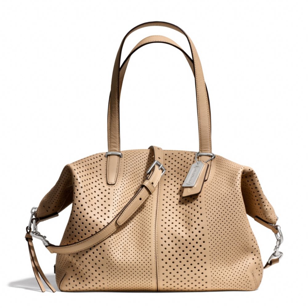 COACH F27913 - BLEECKER STRIPED PERFORATED LEATHER COOPER SATCHEL - SILVER/TAN - HANDBAGS