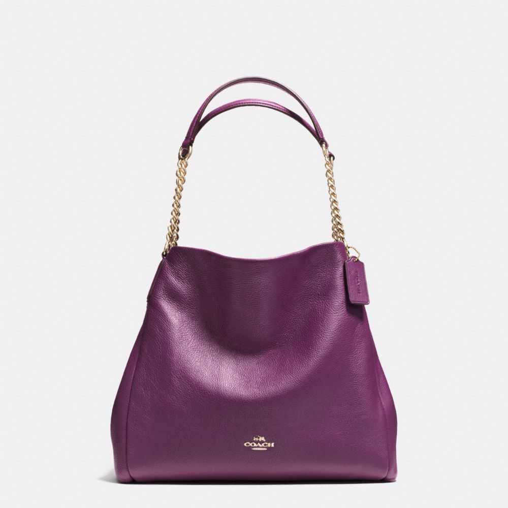COACH F37202 - PHOEBE CHAIN SHOULDER BAG IN PEBBLE LEATHER - IMITATION-GOLD/PLUM - HANDBAGS