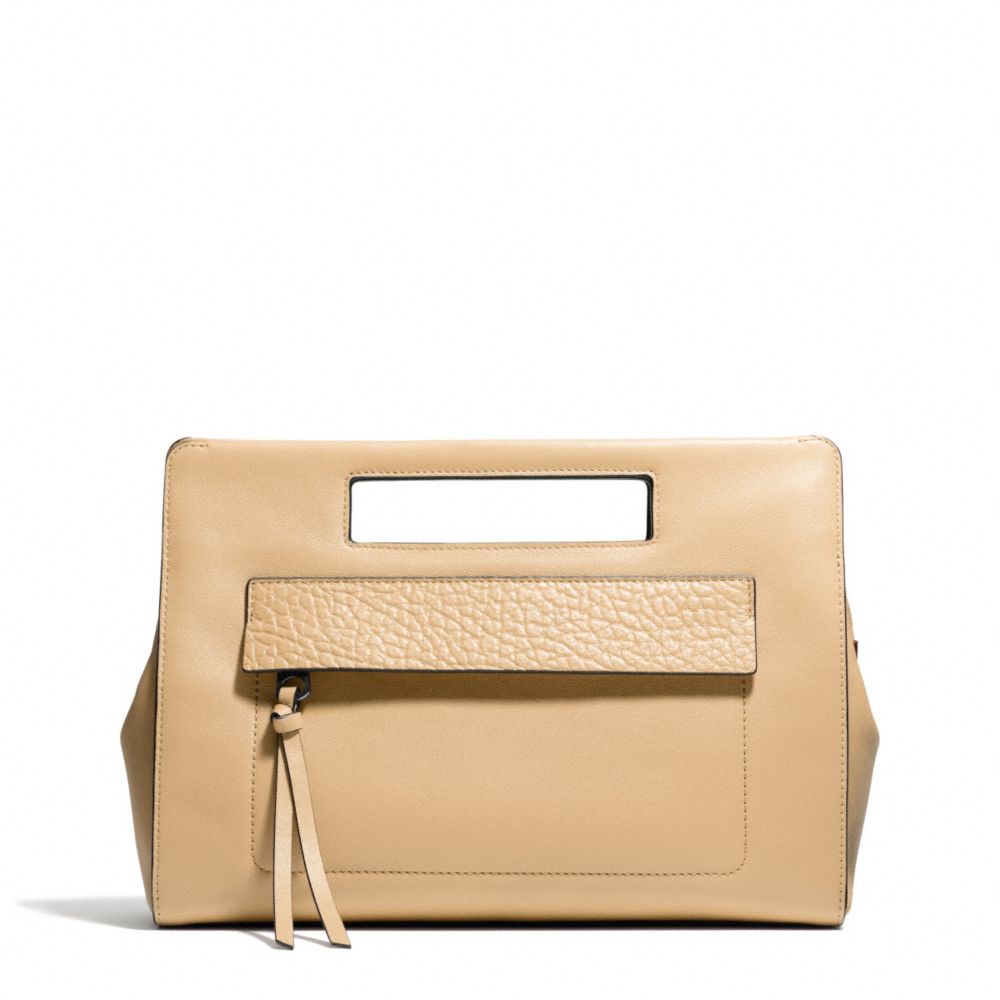 COACH F51194 - BLEECKER LEATHER POCKET CLUTCH - SILVER/TAN - HANDBAGS
