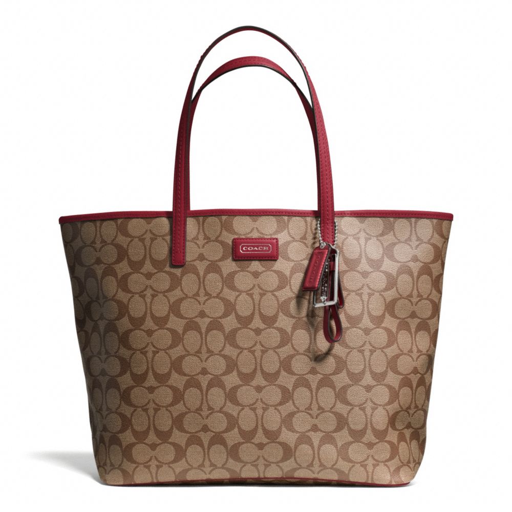 COACH F27393 - PARK METRO SIGNATURE TOTE - SILVER/KHAKI/BLACK CHERRY (click the link before for more detail)