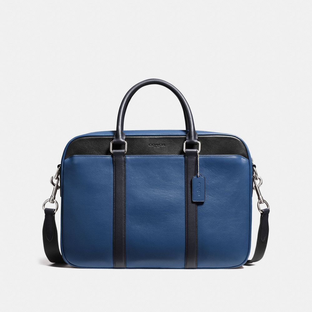 1. COACH f56018 - PERRY SLIM BRIEF IN COLORBLOCK LEATHER - INDIGO/MIDNIGHT/BLACK