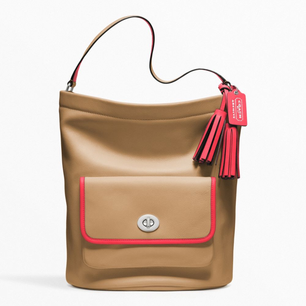 COACH F22407 - ARCHIVAL 2-TONE LEATHER BUCKET - SILVER/LIGHT-SAND/WATERMELON - HANDBAGS