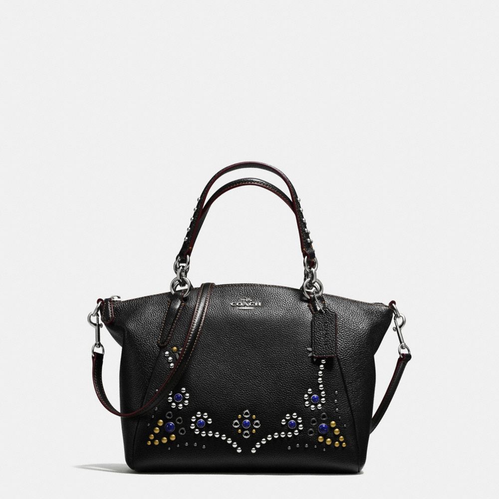 1. COACH f59348 - SMALL KELSEY SATCHEL IN PEBBLE LEATHER WITH STUDDED BORDER EMBELLISHMENT - SILVER/BLACK